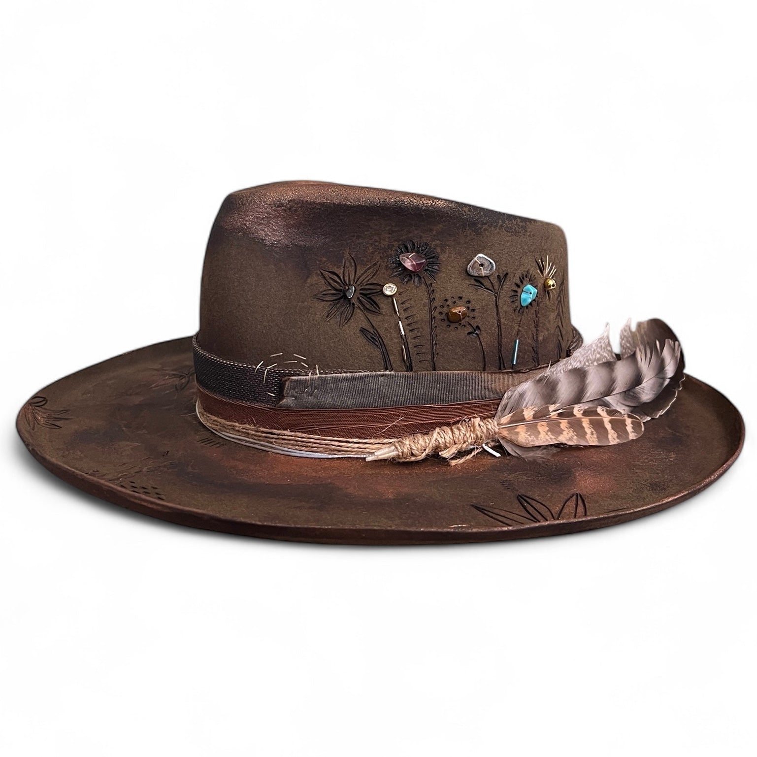 In Stock – Rare Vintage Style Rabbit Felt Hat – “Flowers of Ophelia”
