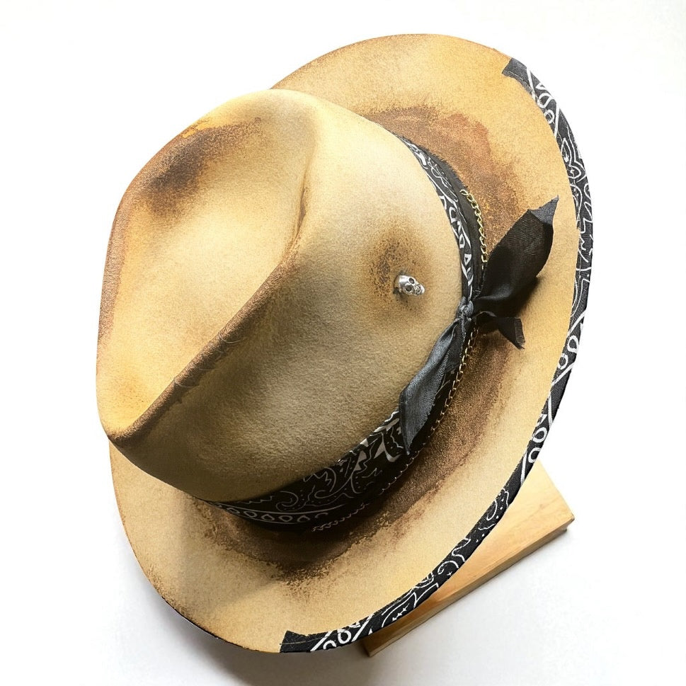 Rare Vintage Boho Custom Hat – Desert Soul – Aged Beige Felt Fedora
