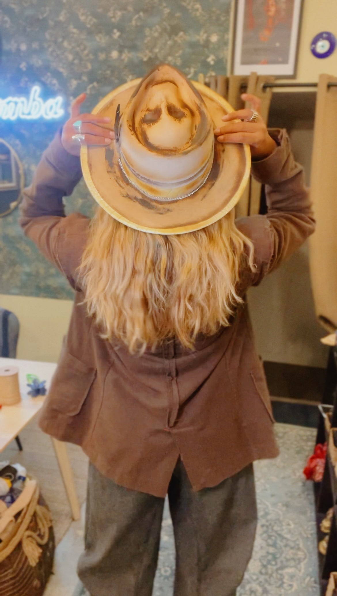 Handmade 100% Felt Hat – Beige Artisan Fedora with Skull Detail | Pokijomba Hats