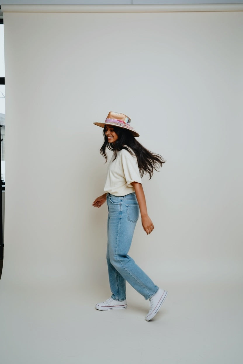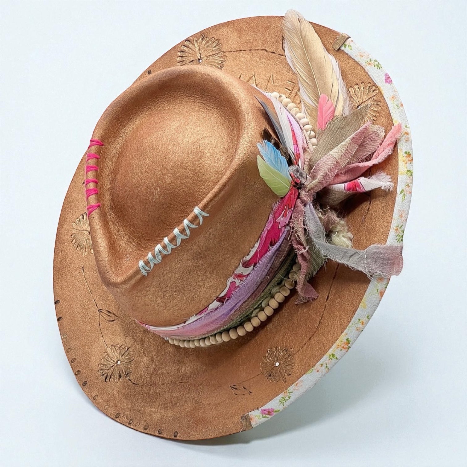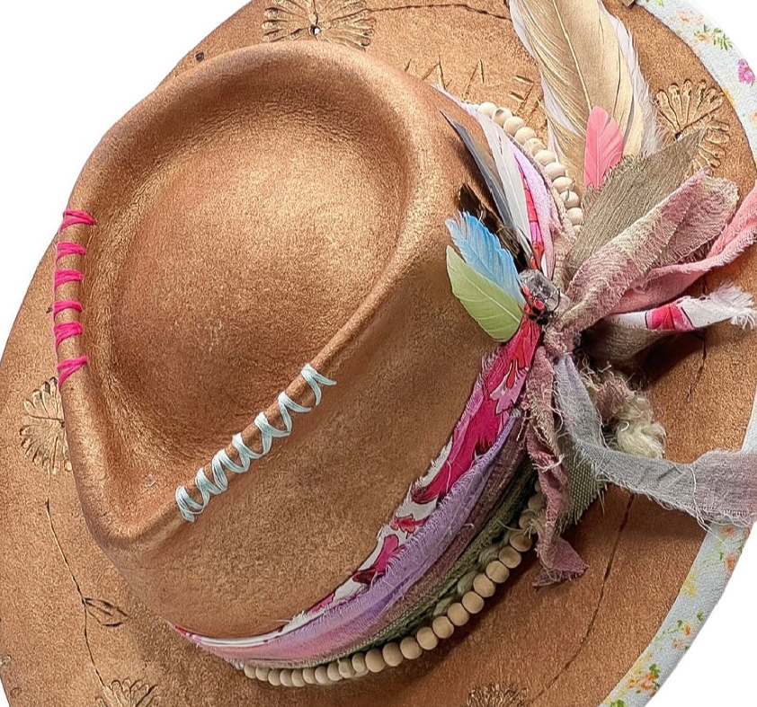 Engraved flower details on the brim of the hat and “Love” on the top of the crown