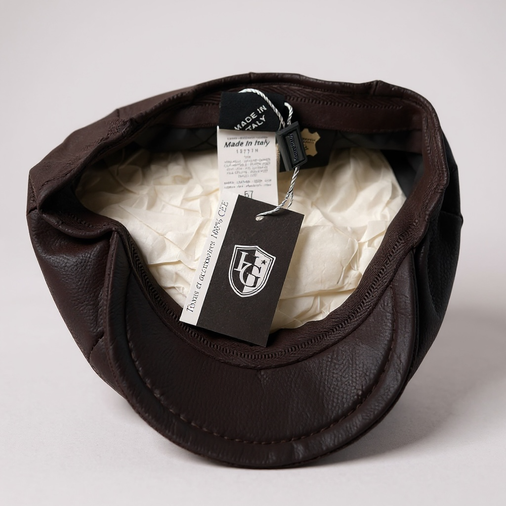 Handcrafted in Italy, this cap is made from 100% authentic brown leather and includes an official leather verification tag, guaranteeing its quality and origin.