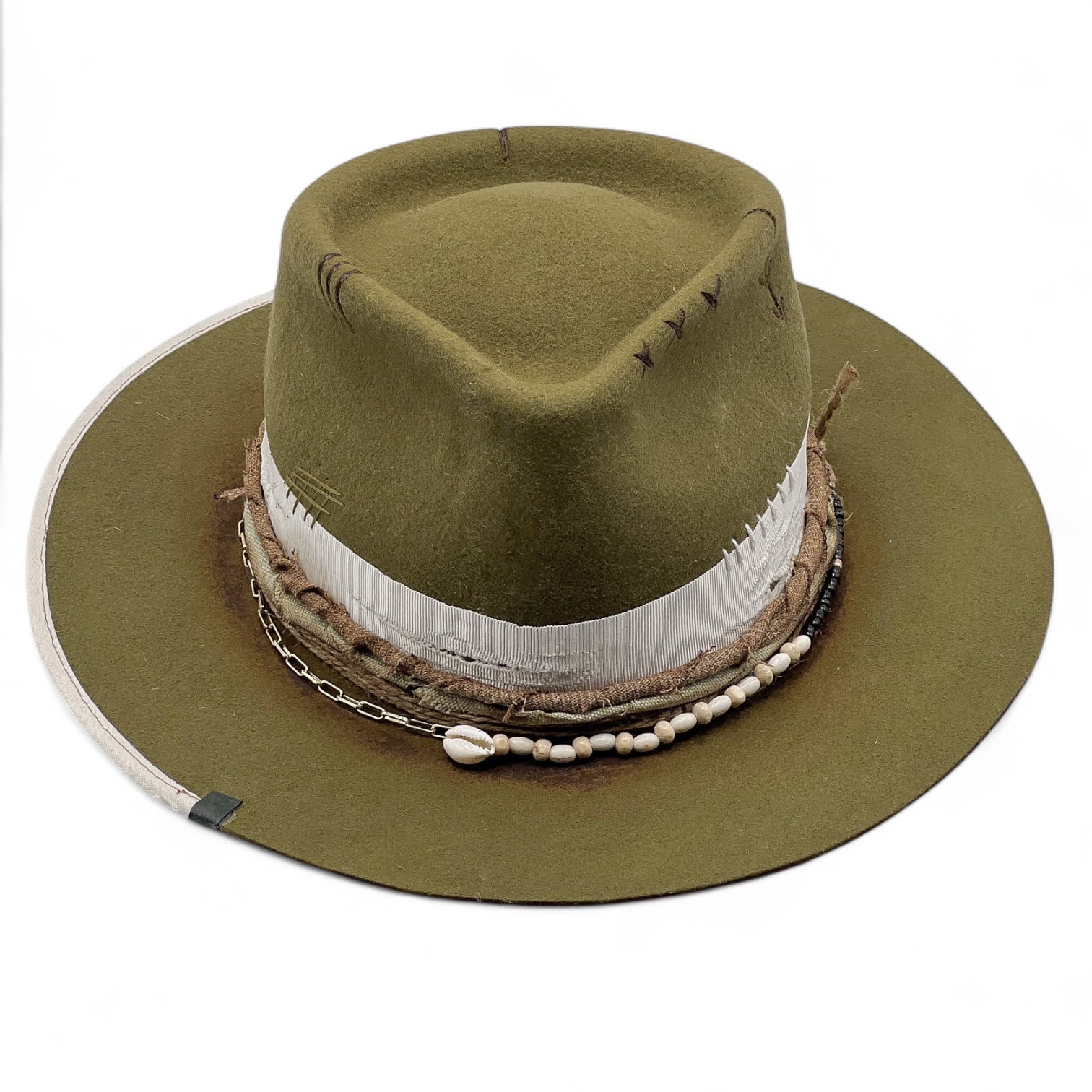 Made from 100% premium felt in green, it features an 11 cm (4.3 in) crown and a 7 cm (2.75 in) brim, offering the perfect balance between structure and relaxed elegance.