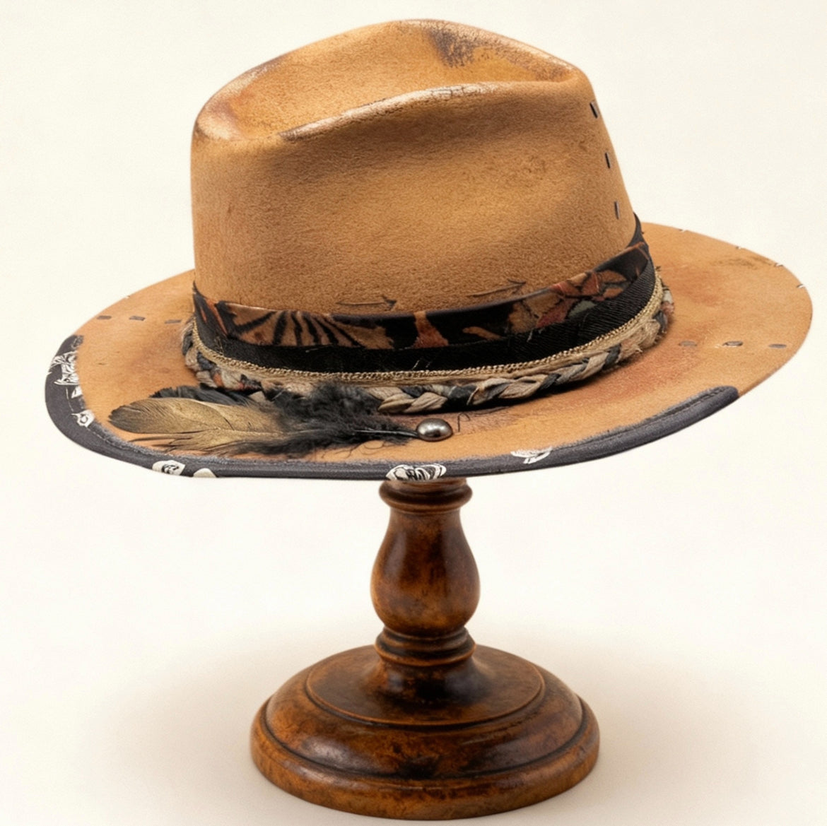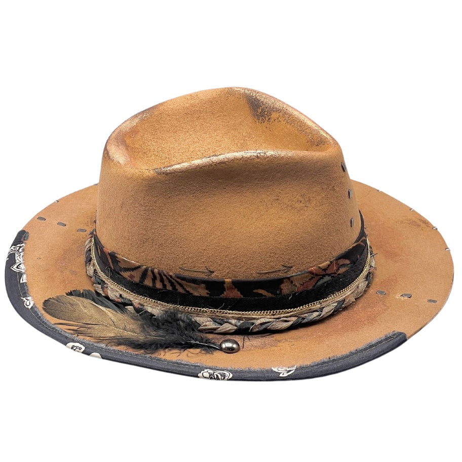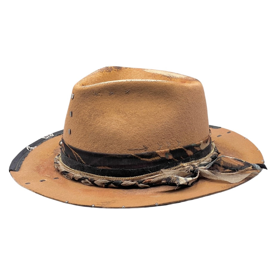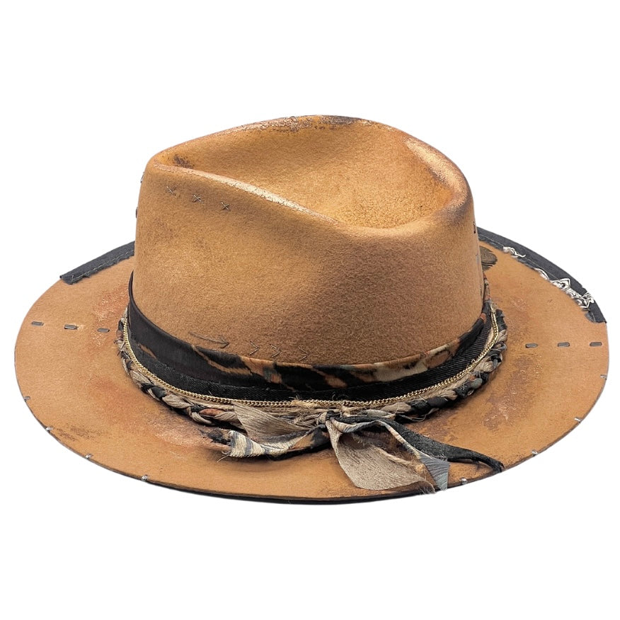 Camel Wool Felt Fedora Hat with Golden Highlights – Handmade Artisan Piece