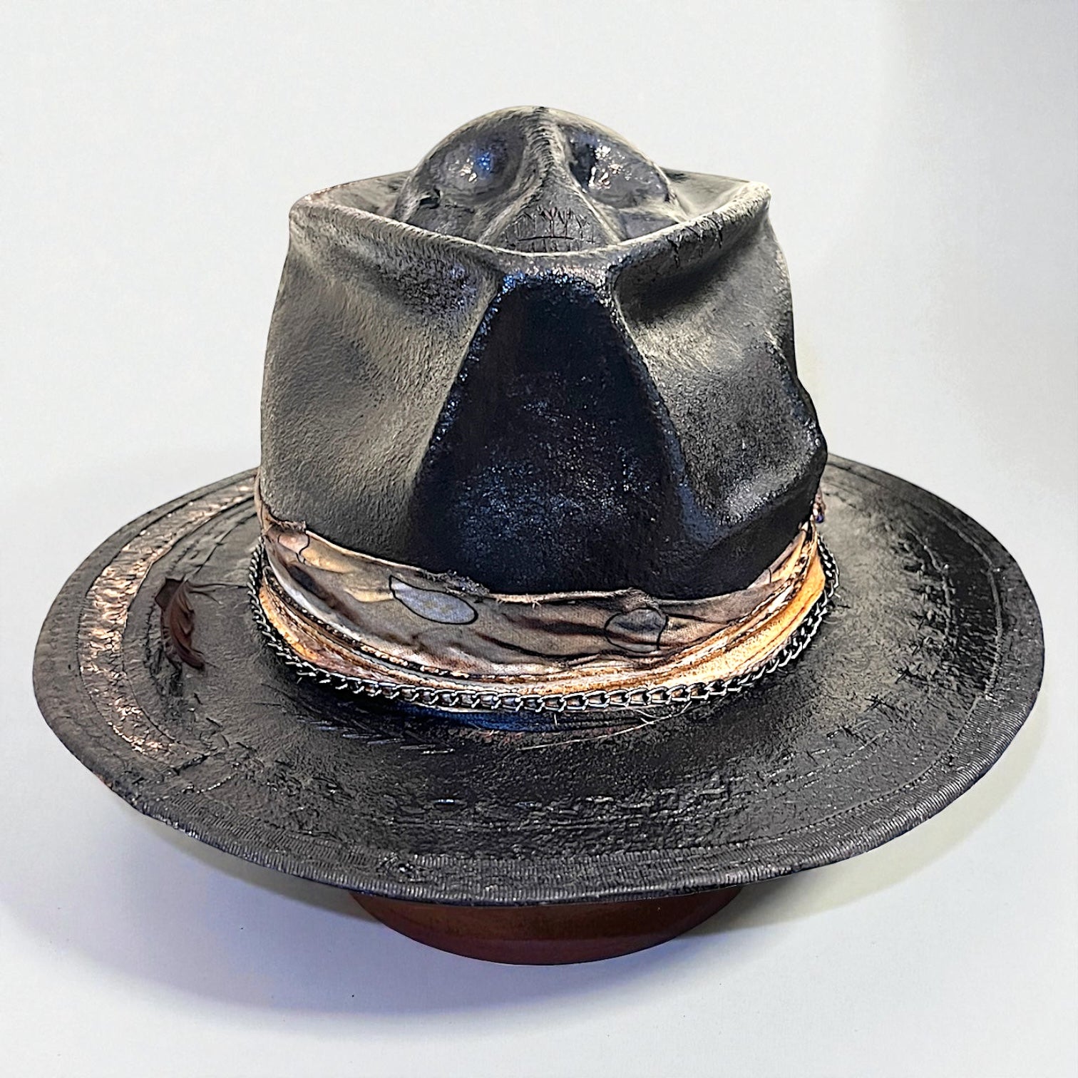 “El Extranjero” Skull Hat – Vintage Leather Efect Fedora