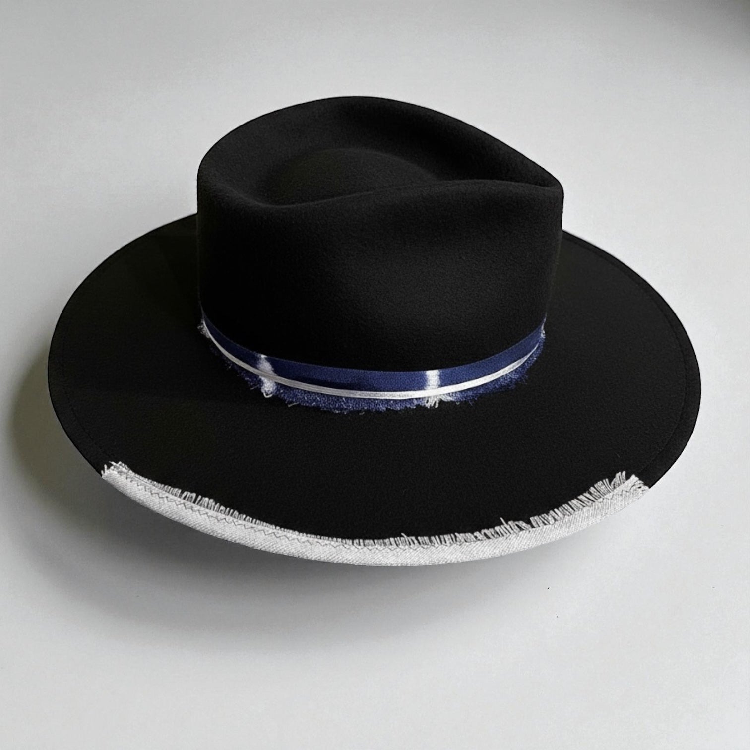 This 100% black felt hat combines minimalist design with artisanal, nature-inspired details for a refined and expressive accessory. Featuring an 11 cm (4.3”) crown and a 7 cm (2.75”) brim, it offers a clean, structured silhouette ideal for everyday wear, creative styling, and elevated looks.