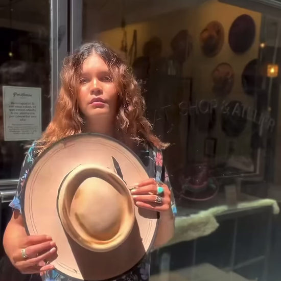 Elevate your style with Hope, a 100% Australian wool felt hat in a soft beige. Featuring an 11 cm crown and an 8.5 cm / 3.34 in brim, this round-crown hat combines classic elegance with artisanal craftsmanship, making it a timeless statement piece.