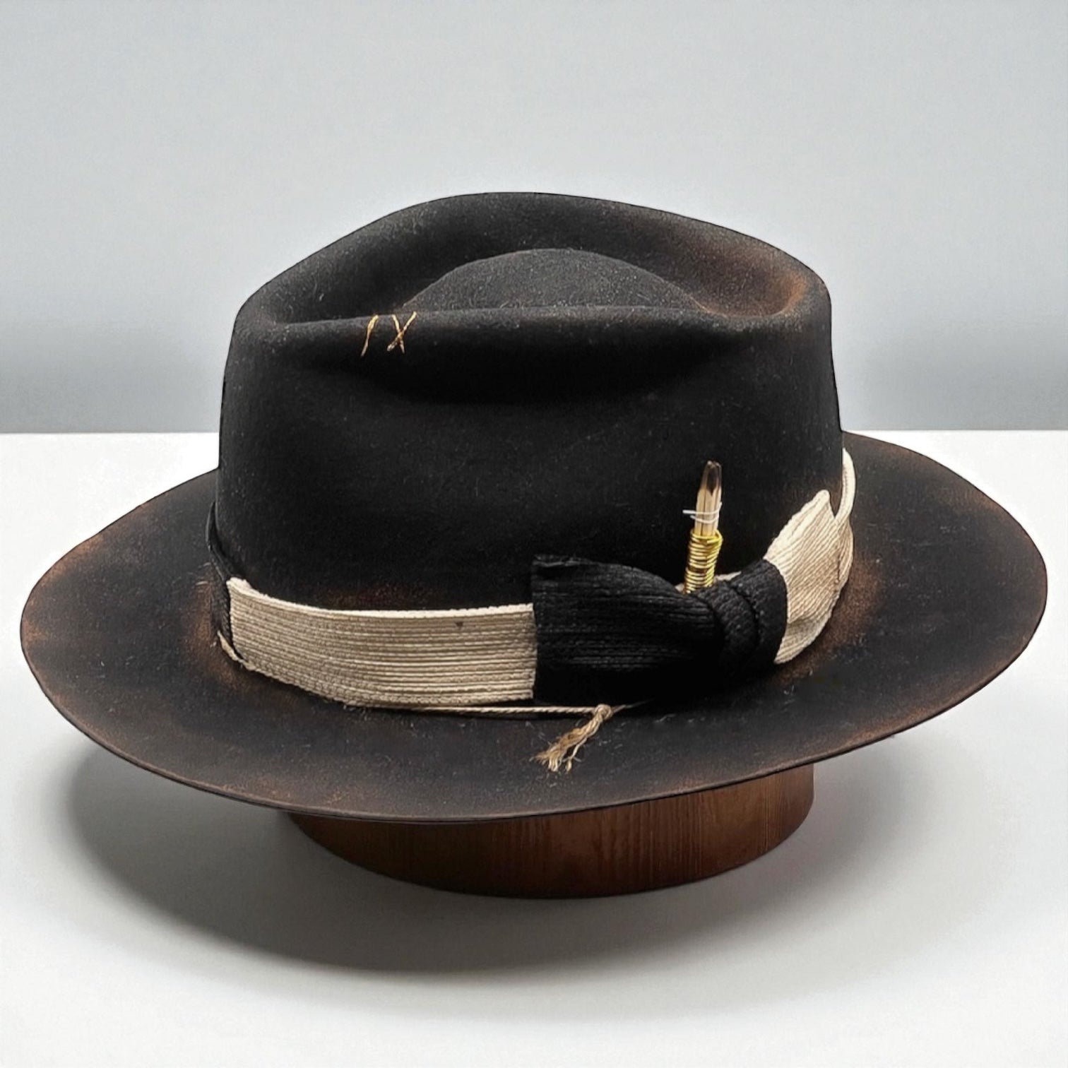This 100% black felt hat combines classic elegance with artisanal details for a truly unique accessory. Featuring an 11 cm (4.3”) crown and a 5.5 cm (2”) brim, it offers a refined silhouette that complements both everyday and special-occasion outfits.
